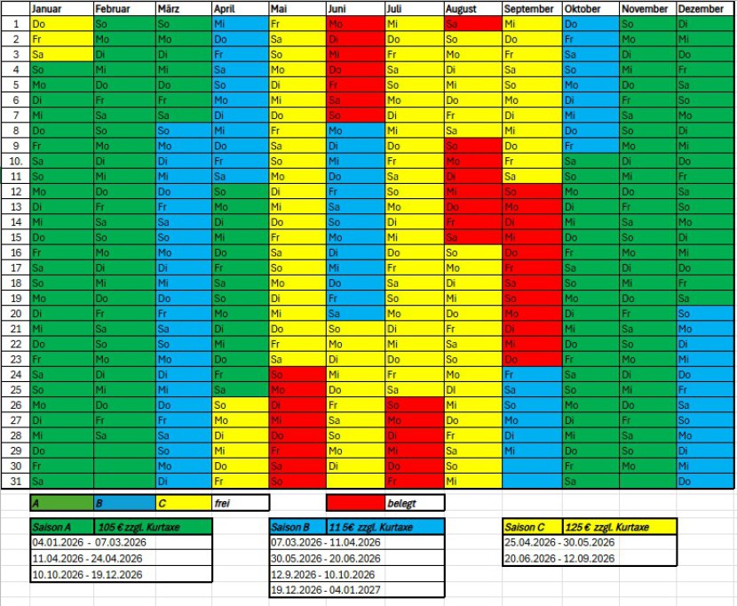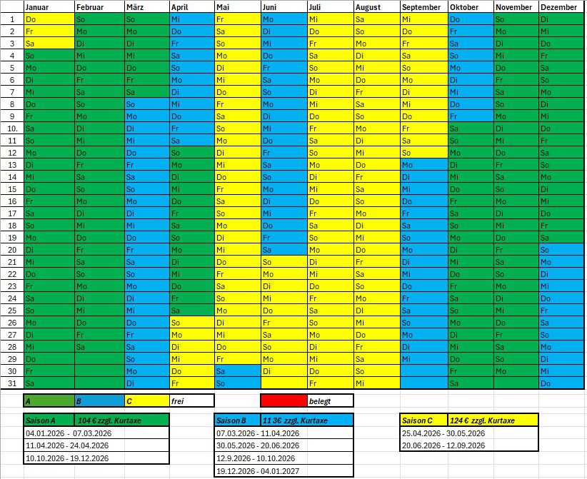 Mindestaufenthalt: Saison A,B,C = 7 Tage