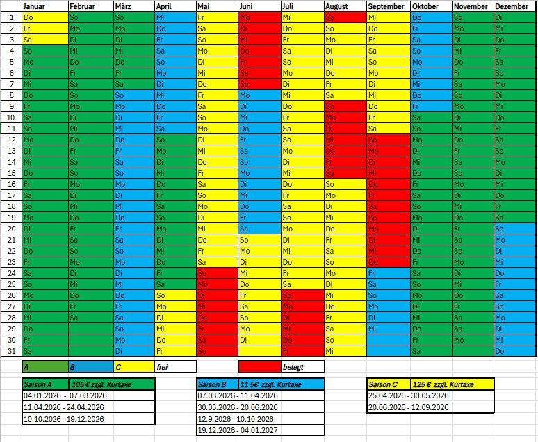 Anreisezeit: Sonntag ab 14:00 Uhr Abreisezeit: Samstag bis 10:00 Uhr